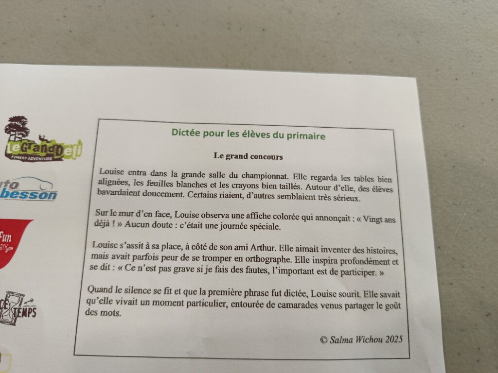 Pour les petits ou grands qu’ils veulent s’essayer, faites-vous dicter le texte ci-dessous.
