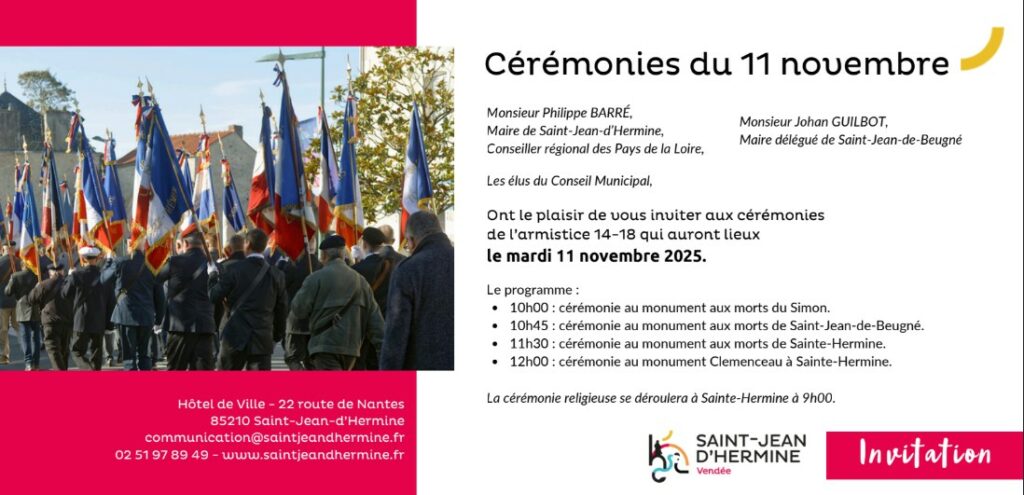 Je vous communique les éléments vis-à-vis de la circulation des bus scolaires sur la Commune de SAINT-JEAN-D’HERMINE à compter du lundi 3 novembre 2025 :