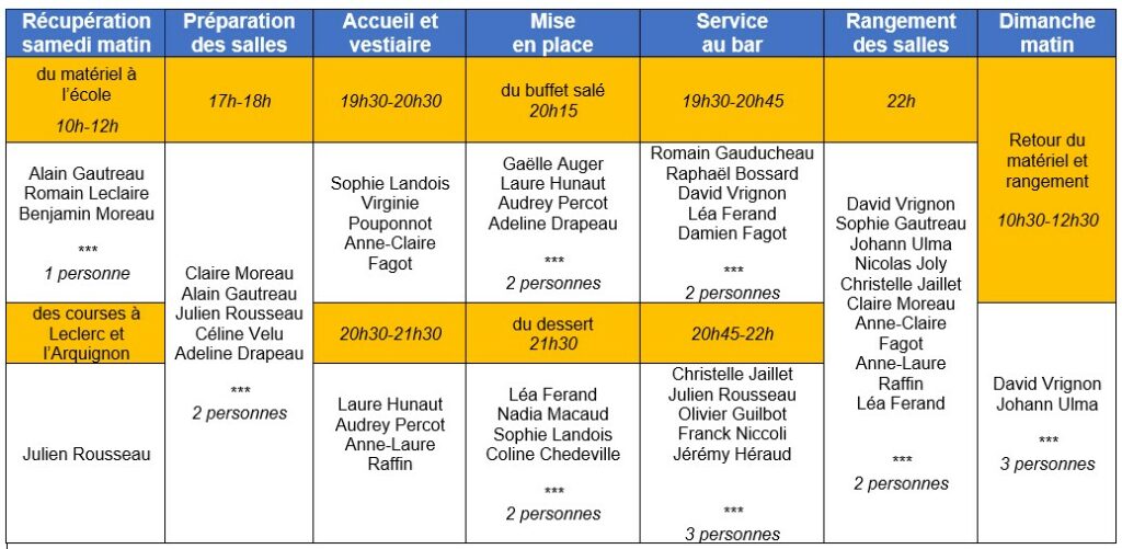Vous trouverez ci-dessous le planning des tâches effectuées par les parents bénévoles.