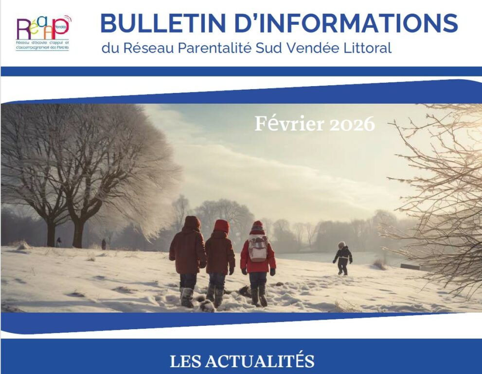 Le Réseau Parentalité Sud Vendée Littoral, ou REAAP local (Réseau d’Écoute d’Appui et d’Accompagnement des Parents), met en relation les acteurs de la parentalité (partenaires, professionnels et parents)qui, dans leurs actions et leur implication souhaitent offrir aux parents des espaces de paroles, d’écoute, d’échanges et de conseils autour de leurs préoccupations pour le bien être de leur enfant.