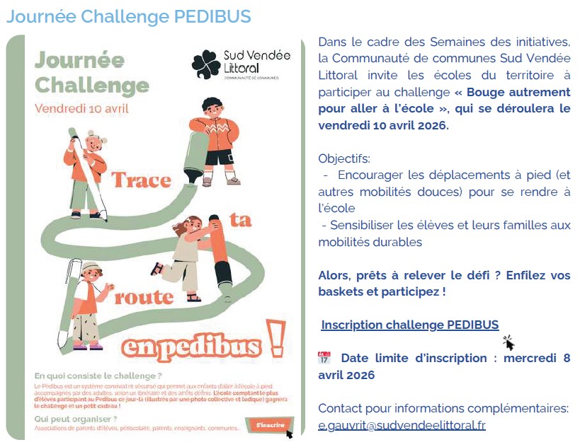 Vous croyez pouvoir relever le défi, on se donne rendez-vous à mon retour ( après le 9 mars) pour organiser un pédibus qui rassemblerait un maximum d’enfants de notre école.