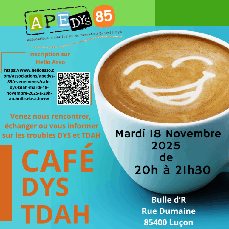 - APEDYS85: Café-DYS et TDAH 18 novembre soir à Luçon