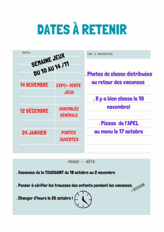 Pour les parents présents lors de la rentrée, l’équipe de l’APEL vous proposera un accueil autour d’un café sur la cour des grands.