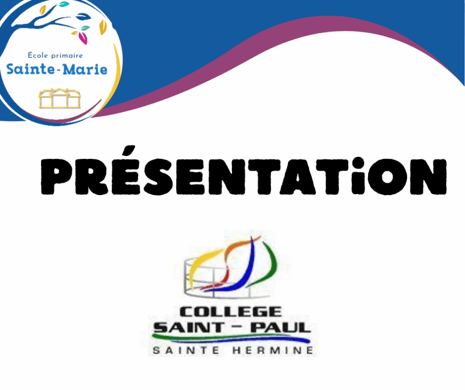 Mme Mathias, cheffe d’établissement, viendra présenter le collège St Paul le jeudi 20 novembre à 18h30 dans la classe des CM2. Elle rencontrera également les élèves de CM2 de 16h à 16h30.