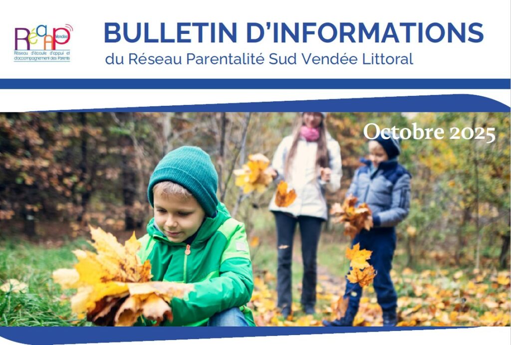 Le Réseau Parentalité Sud Vendée Littoral, ou REAAP local (Réseau d’Écoute d’Appui et d’Accompagnement des Parents), met en relation les acteurs de la parentalité (partenaires, professionnels et parents)qui, dans leurs actions et leur implication souhaitent offrir aux parents des espaces de paroles, d’écoute, d’échanges et de conseils autour de leurs préoccupations pour le bien être de leur enfant.